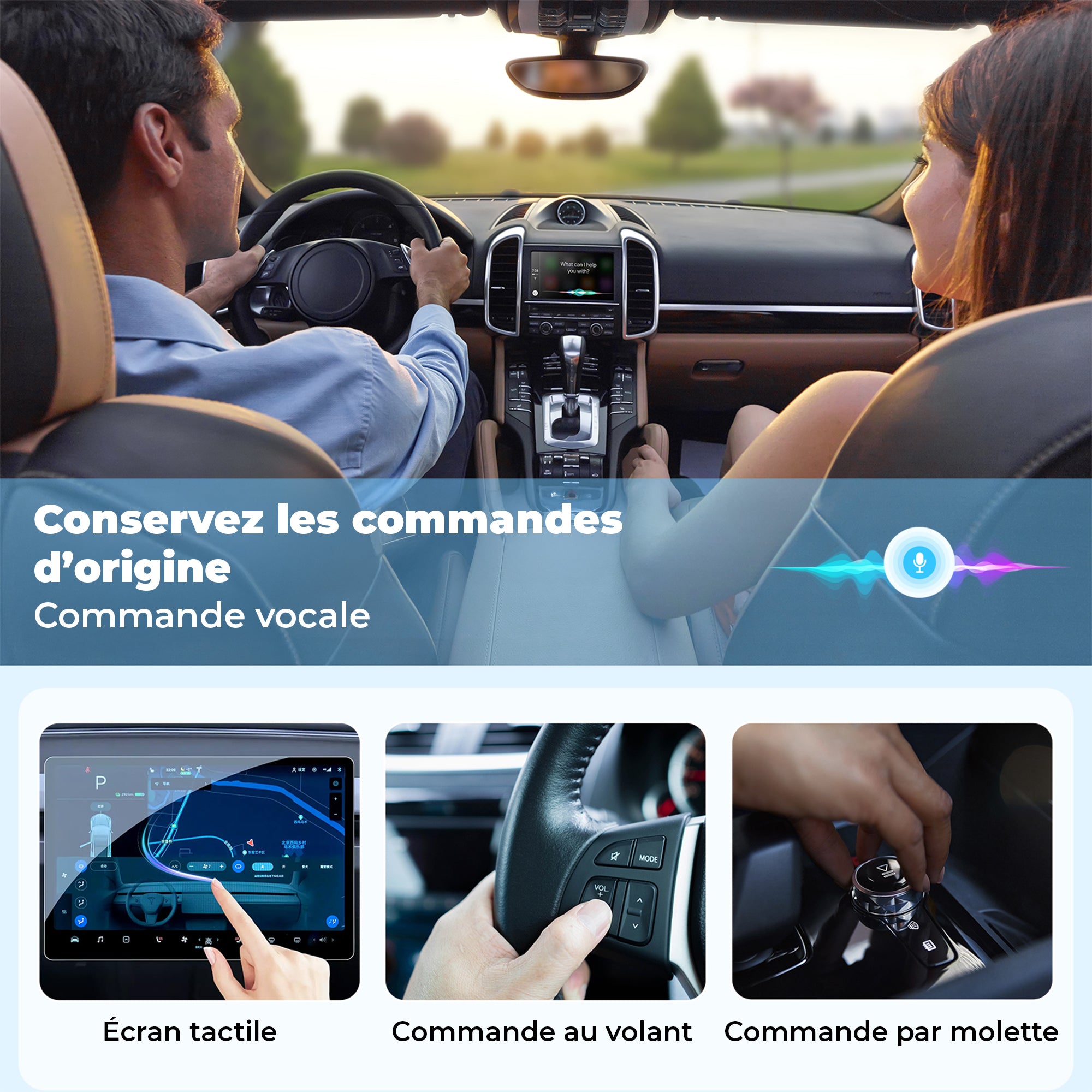 • Compatibilité étendue : Conçu pour s'intégrer à 98% des véhicules équipés de CarPlay, avec prise en charge de la commande vocale, des commandes au volant et de l'écran tactile.