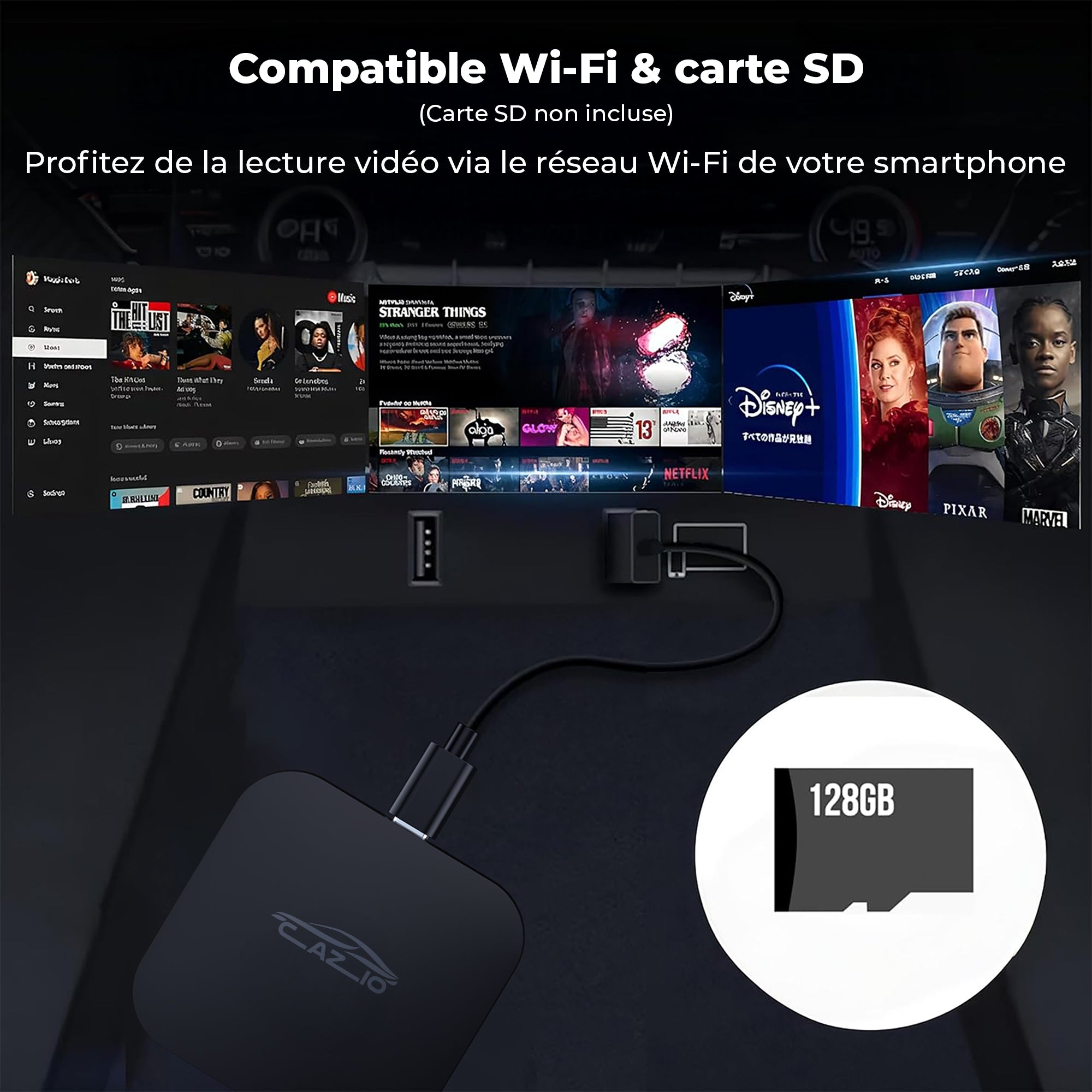 Le CAZIO CarLink Pro est un adaptateur multimédia de dernière génération qui transforme votre voiture en un véritable centre de divertissement et de communication.