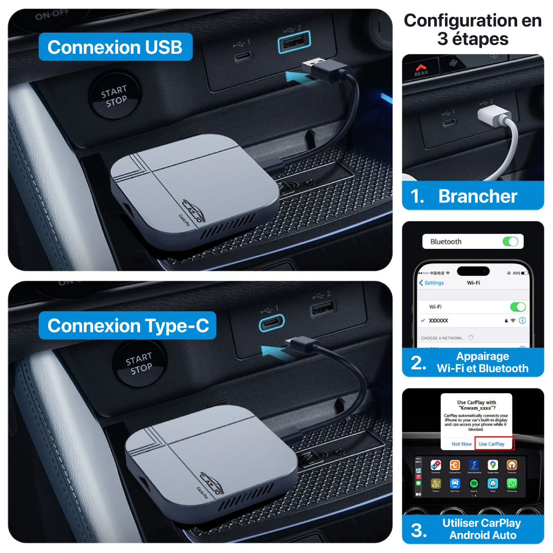 ⚠️ Le CarLink Pro™ Plus est uniquement compatible avec les véhicules modèle 2018+ équipés de CarPlay d'origine.