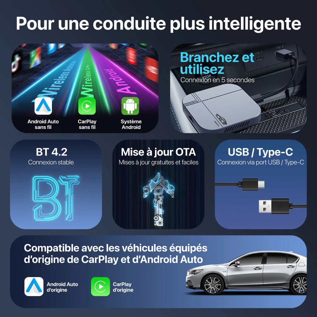 Carplay&Android auto cablé en sans fil
